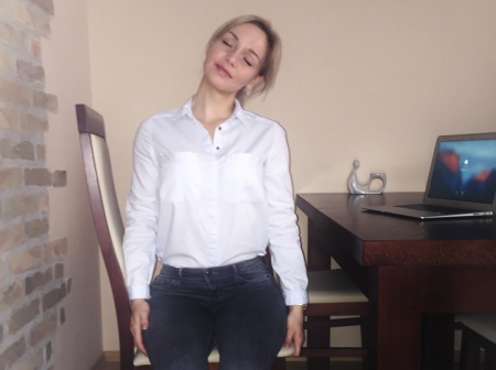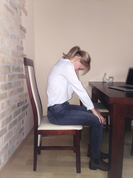 To najlepszy sposób na to, żeby delikatnie rozruszać ciało. Kiedy siedzisz długo nieruchomo na krześle dobrze jest wykonać kilka takich delikatnych skrętów aby odżywić kręgosłup i poczuć się lżej.
