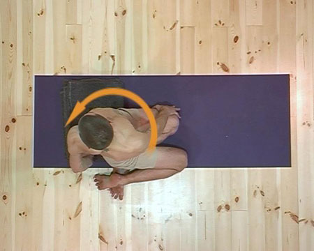 - Odpychając się prawą dłonią od kocy skręć tułów.