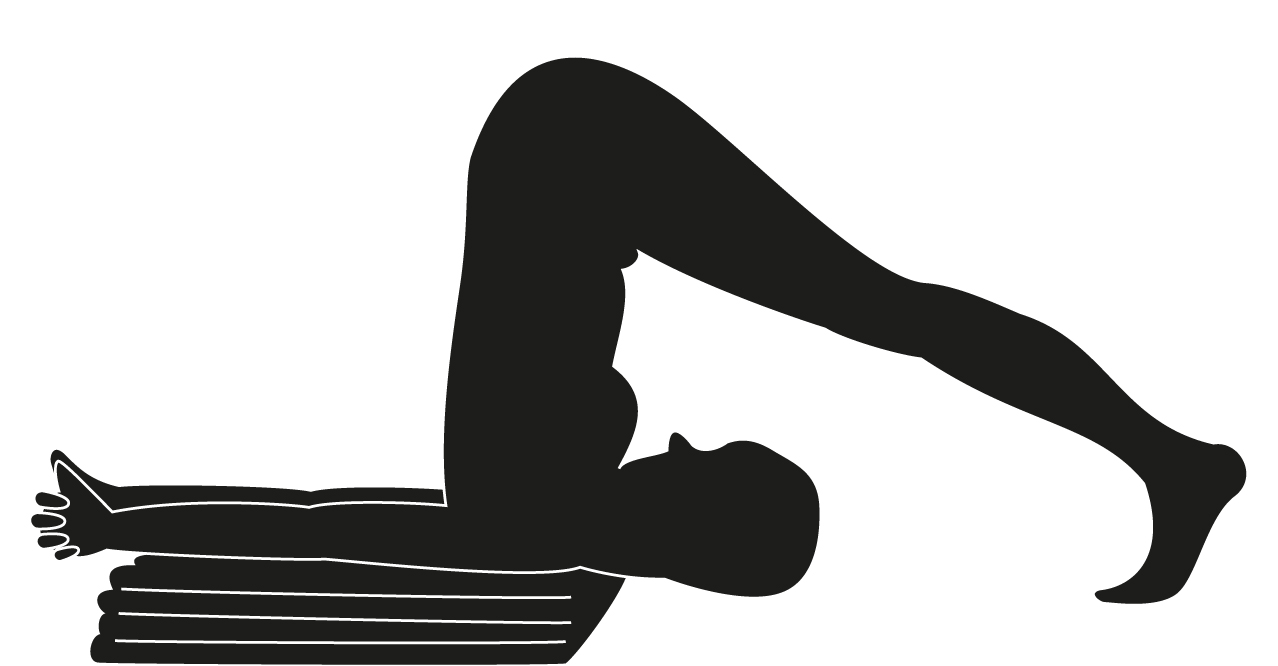 5. Utrzymaj pozycję od 1- 5minut po czym ważne jest, aby wyjść z niej bardzo powoli. Połóż dłonie z powrotem na plecach a teraz powoli upuszczaj pośladki w stronę podłogi, trzymaj nogi blisko tułowia napinając mięśnie brzucha. Zacznij powoli upuszczać nogi. Po wykonaniu tej pozycji poleca się wykonanie kilku kontrpozycji rozluźniających plecy i szyję (Pozycja Odwróconego Brzucha, Pozycja Głowa do Kolan, Pozycja Ryby, Rozluźnianie Szyi).