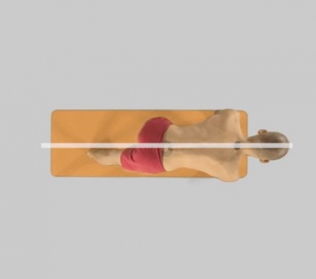 6. Jeżeli możesz - połóż dłonie na klockach. Utrzymuj kręgosłup dokładnie w osi z matą. Oś pozycji przebiega pomiędzy wewnętrznymi piętami.