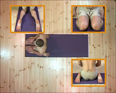 - Klęknij łącząc kolana i rozszerzając stopy na bok.