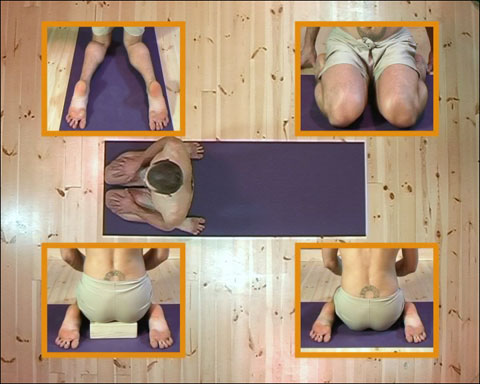 - Jeśli nie możesz usiąść na podłodze podeprzyj pośladki na kocu lub klocku.