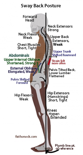 Przeprost w stawach kolanowych, obecny w postawie swayback, według koncepcji Toma Myersa świadczy o nierównowadze pomiędzy krzywiznami pierwotnymi i wtórnymi. Według niego bowiem tylne ściany kolana należą do wtórnych krzywizn, znajdując się pomiędzy kifozą krzyżową i łukiem pięt. Ta koncepcja, jeśli się prześledzi tory ewolucji zarówno w filogenezie jak i ontogenezie, wydaje się dość dziwna. Bo przecież kończyny dolne człowieczka zwiniętego w kłębek przed urodzeniem są zgięte, czworonogi mają kolana stale zgięte.