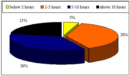 Ryc. 2. Deklarowana ilość godzin w tygodniu poświęcana na ćwiczenia hatha-jogi