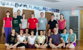 Tak wiec siedmiogodzinna różnica czasu plus 3 godziny czekania, plus 4 godziny w autobusie, czyni mój dzień długim. A w poniedziałek juz o godz. 7.00 rano wszyscy jesteśmy na matach, rozpoczynamy warsztat praktyką asan, w tym pozycje odwrócone, aby szybciej "dojść do siebie" po podróży.