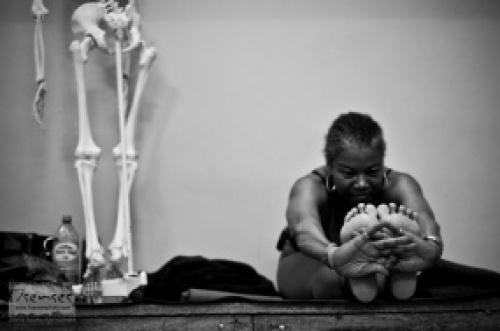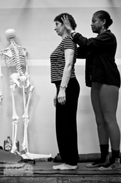 Jaki Nett widzi pracę w jodze Iyengara przez pryzmat ludzkiej anatomii. Pokazywała nam na szkielecie i instruowała w pozycjach, tłumacząc skąd i jakie ruchy pochodzą, z jakich mięśni. Takie podejście trochę "odczarowuję" magię Iyengarowych wymyślnych instrukcji typu "oddziel skórę od mięśni i przesuń ją z lewa na prawo". Cały smaczek Iyengarowej jogi tkwi w tych śmiesznych, czarodziejskich poleceniach, bo one działają na ludzką wyobraźnię i pobudzają intuicyjne odczuwanie. Jednak po kilku latach usilnych prób "przesuwania skóry", naturalnym dopełnieniem staje się fachowa wiedza, dotycząca bio-mechaniki ciała. Nie muszę już wizualizować sobie powłok, nitek, złotej igły wędrującej środkiem kręgosłupa czy szyi kobry (choć to naprawdę piękne metafory), kiedy mam możliwość zrozumieć, czemu w praktyce te wizualizacje służą i co się rzeczywiście wydarza w ciele, w szkielecie.