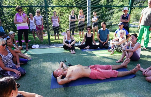 Niedzielny poranek nie mógł być rozpoczęty inaczej niż praktyką jogi. Zajęcia przygotowawcze, prowadzone przez Wiktora Morgulca, były pełne licznych wskazówek dla joginów, dzięki którym mogli wykonać swój własny Maraton Jogi bez zbędnych obciążeń dla organizmu i w zgodzie ze swoją wydolnością.