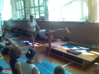 W dniach 9-13 VI 2005 odbył się warsztat z Gabriellą Giubilaro. w Mińsku na Białorusi. Gabriella jest Włoszką, zajmuje się jogą Iyengara już dobrze ponad 30 lat. Zaliczana jest do topu światowych nauczycieli jogi Iyengara, a z Polską związana była od 1985 roku, dzięki Sławkowi Bubiczowi a później Jurkowi Jaguckiemu. Nie miejsce tu na rozpisywanie się ile jej zawdzięcza polska joga, ale myślę że wszyscy wielcy polskiej jogi sporo jej zawdzięczają.