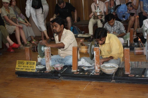 Tym razem super Express Shatabi jak w zegarku. Na dworcu w Agrze nie ma bitwy o Białasów, tuk tuki są już wcześniej zamówione. Kierowcy zakładają nam na szyję kwieciste wieńce i ruszamy. Taj Mahal jak stał tak stoi i robi dobre wrażenie. Obiad w restauracji Maya, wycieczka do lokalnych rzemieślników produkujących marmury inkrustowane drogimi kamieniami - techniką sprzed pół wieku. Demonstracja, zimne napoje i czaj, zakupy. Potem sklepiki z biżuterią i materiałami. Powrót na stację, Shatabi znowu punktualnie jak w szwajcarskim zegarku, powrót do hotelu.