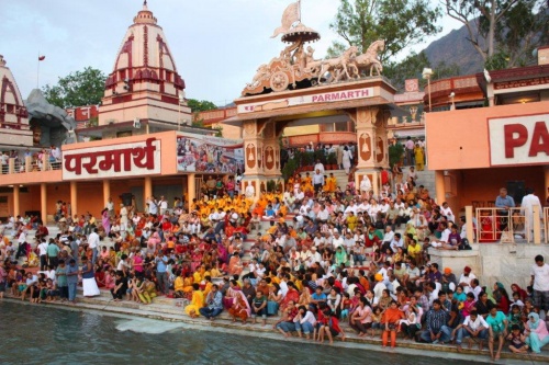 Wieczorem ashramowy posiłek. Następnego dnia kąpiel w Gangesie, wycieczka tuk tukami do Haridwaru - gdzie poza nami praktycznie żadnych białasów. Przy okazji okazuje się że lokalna cena za przejazd jest dwa razy tańsza niż to co płaciliśmy dotychczas. W Haridwarze bierzemy udział w hinduskich ceremoniach, próbujemy hinduskich słodyczy i wracamy pod wieczór. Następny dzień odpoczynkowy, część grupy idzie na rafting, reszta kąpielowo, spotykamy się ze spływającymi na pontonach w lokalnym kąpielisku. Woda i piasek pełna jest srebrnych drobinek. Po kąpieli czujemy się super odświeżeni.