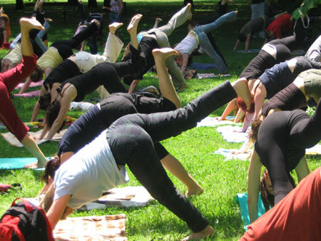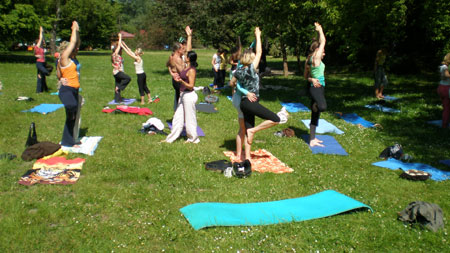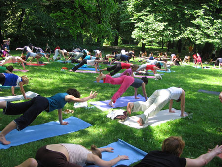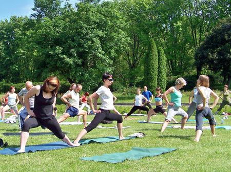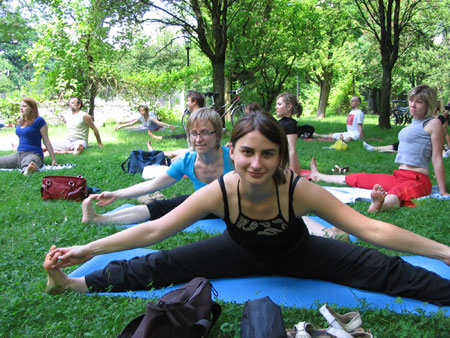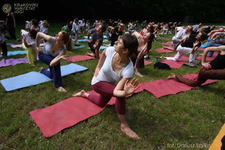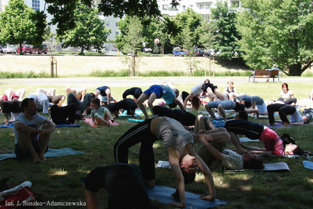 Wrocław, Park SzczytnickiPogoda dopisała, niebo było bezchmurne. Ćwiczyliśmy pod rozłożystym, przepięknym dębem. W jego cieniu zebrało sie ok. 70-80 osób. Większość miała niewielkie pojęcie o jodze dla pozostałej części to było pierwsze spotkanie z jogą . Zajęcia dostosowałam do poziomu ćwiczących. Magia miejsca, na którym ćwiczyliśmy emanowała na wszystkich.