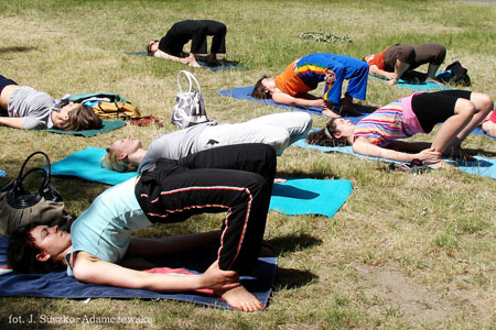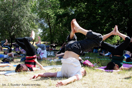 To było 5 spotkanie z Jogą na Trawie. W naszym projekcie półmetek - bezpłatne zajęcia w największych miastach Polski będą odbywały się w każdą sobotę do 12 lipca. Wiele osób sobotni poranek z jogą wpisało sobie już do harmonogramu dnia i przychodzą regularnie, nie wyobrażając sobie innego początku weekendu. Namawiają znajomych i tak pojawiają się również nowe osoby. Aura nam dopisuje: ciepłe promienie słońca, lekki wiaterek owiewający ćwiczących, zapach świeżo skoszonej trawy i kwitnących jaśminów sprawiają, że joga na trawie jest doświadczeniem wyjątkowym, niezapomnianym. Zapraszamy, doświadcz i Ty!