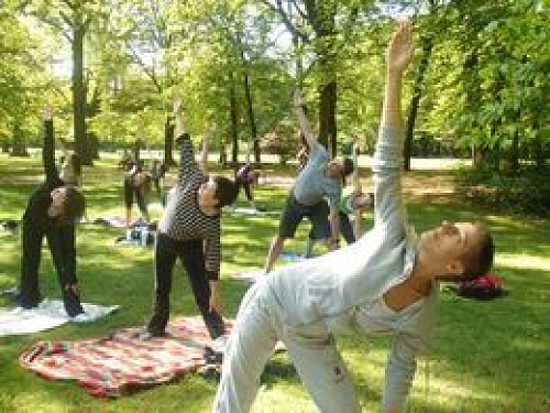 Warszawa, Kępa PotockaInauguracyjne zajęcia Jogi na trawie w tym roku zgromadziły na Kępie Potockiej około 80 osób. Zajęcia dla dorosłych poprowadził Wiktor Morgulec z Centrum Joga Żoliborz. Niektórzy jogini przyszli z dziećmi, dla których osobne zajęcia prowadziła Joanna Kołyszko-Tomasik.