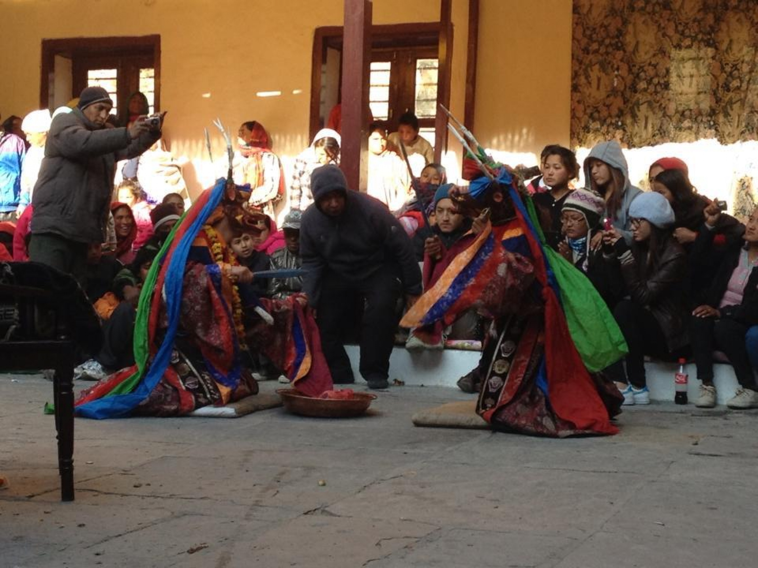 Trzeci dzień trekkingu był długą wędrówką po płaskowyżu, częściowo przebiegał po korycie rzeki, która o tej porze roku ma kształt skromnego górskiego strumienia. Ponieważ dotychczasowe warunki nie pozwoliły poćwiczyć jogi, namówiłam grupę na wędrówkę medytacyjną: milczenie i skupienie na oddechu do następnej wioski, co trwało jakieś 2 h-:) . Po krótkim lunchowym postoju w Jomsom wyruszyliśmy w dalszą drogę, motywacja, żeby pójść szybciej była duża, ponieważ w Marfie- mieście" drewutni" obchodzono tego dnia jakieś święto, nikt nam nie potrafił odpowiedzieć, o co dokładnie chodziło, ale przedstawienie w Monastyrze było rzeczywiście ciekawe - były bębny, przebrania za yaki, smoki, potwory tańczący mnisi, a najlepsza była wiwatująca, jak na meczu piłki nożnej publiczność.Widok Marfy z góry jest odlotowy, wygląda jak wielki skład drewna. Na tej wysokości drewno jest już łatwiej dostępne i stanowi główny materiał opałowy - składy drewna suszone są na dachach budynków.
