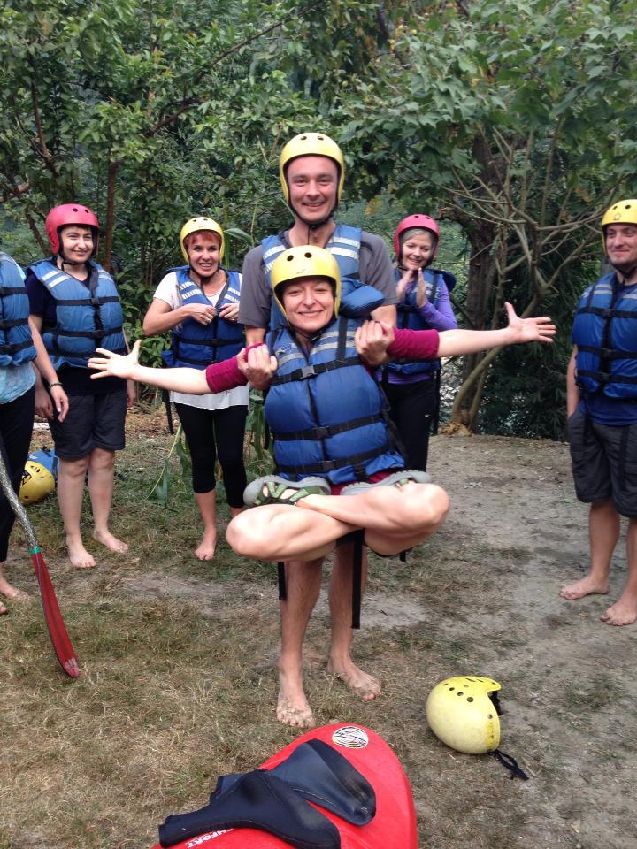 Dzisiaj było naprawdę mokro i to nie z powodu deszczu, tylko raftingu, którym się spławialiśmy po rzece Trisuni. Nasz dowcipny sternik parę razy wpakował nas w największe piętrzenia wody. Zależało mu żeby ktoś wypadł za burtę, ponieważ ogłosił konkurs: "kto wypadnie stawia piwo". Załoga trzymała się dzielnie, ponton wyskakiwał na największych falach, nasze oczy zalewały ściany wody. Trzymaliśmy się tak dzielnie, że na jednym z takich wyskoków zgubiliśmy kierowcę:-) Biedny, zgubił swoje wypasione okulary, więc mu podatowaliśmy to piwko. Spływ był super, dosyć wymagający, ale świetna zabawa. Teraz jemy kolacje w Pokharze, jutro rano lecimy do Jomsom- rozpoczynamy trekking.