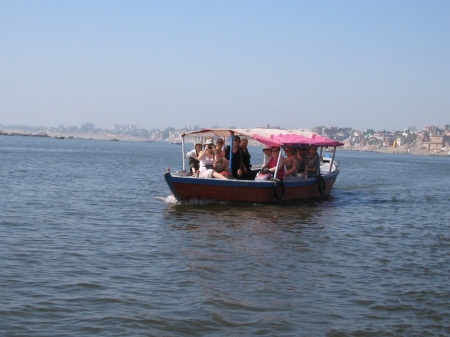 Rano joga, śniadanie w stylu indyjskim: smażony placek z warzywami i jogurt. Żegnamy się w Alka Hotel, rozliczenia bez większych sensacji, wszystko gra. Dwiema łodziami wraz górą plecaków i waliz płyniemy na...przystanek autobusowy. Rzeką dużo łatwiej się tam dostać niż przez zatłoczone miasto. Płynąc wzdłuż brzegu rzut oka na poranne ablucje, modlitwy i wodne zabawy. Sprawny przepak do klimatyzowanego autobusu i w drogę. Kierowcy nie mówią po angielsku, na migi dogadujemy się w kwestiach postojów i mkniemy z zawrotną prędkością lokalnym płatnym highway'em omijając wyjeżdżające z poboczy w poprzek drogi ciężarówki. Okolica jest wyraźnie biedna, rolnicze tereny, rozpadające się budki, przybudówki, wyludnione stacje benzynowe, przydrożne restauracje świecące pustkami, w których strach się zatrzymać. Z owoców tylko winogrona i pomarańcze i to też nie za często. W końcu zatrzymujemy się przy jakimś bazarku, kupujemy owoce i pikantne makaroniki dla całej załogi, przez całą drogę nie było miejsca wzbudzającego zaufanie żeby coś zjeść - Bihar- najbiedniejszy stan Indii.