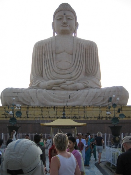 Kolację jemy w stylizowanej na tybetańską ale zarządzanej przez hindusów namiotowo-barakowej knajpce rekomendowanej w Lonely Planet i oczywiście załatwionej przez naszych przewodników. Jedzenie wyśmienite, smażone veg momo jest super. Umawiamy od razu śniadanie i idziemy do Mahabodhi temple- miejsca oświecenia Buddy. Jest już wieczór, na miejscu wyjątkowo spokojnie i cicho, zupełnie inaczej zapamiętałem to miejsce. Ale wtedy byłem w zimie i było mnóstwo Tybetańczyków mantrujących głośno non stop. Miejsce ma swoją szczególną atmosferę, część grupy zostaje do momentu zamknięcia. Osoby chętne mogą wystąpić do zarządzającego świątynią Mahabodhi Society o specjalne pozwolenie na medytowanie w nocy pod drzewem Bodhi, żeby je otrzymać trzeba w biurze znajdującym się dokładnie naprzeciwko świątyni złożyć ksero paszportu, wpłacić 100 Rp i dostaje się potwierdzenie upoważniające do przebywania na terenie świątyni po 21.00. Może obowiązywać wiele dni. Cała operacja załatwiana jest od ręki. Dla chcących medytować w nocy dostępne są mini iglo moskitiery - można je kupić, albo jak się trochę zakręci, nawet wypożyczyć. Koszt zakupu - cena startowa 750 rp, wypożyczenie 200 rp.