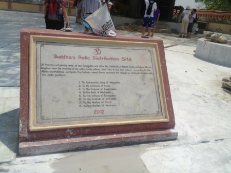 Finalnie szczątki zostały podzielone na 8 części i przekazane ośmiu lokalnym władcom i ulokowane w stupach, w ich królestwach. Następnie cesarz Asioka raz jeszcze zebrał i podzielił relikwie na ogromną ilość części i kazał umieścić je w wielkiej ilości stup (kopców) nie tylko w Indiach ale i innych krajach ościennych, dokąd za jego panowania wysyłani byli nauczyciele Dhammy. Tak nauki Buddy dotarły do Birmy, Tajlandii, Laosu, Kambodży, Wietnamu, Sri Lanki. W krajach tych słowa Buddy (teoria) zostały zachowane do dziś, natomiast praktyka medytacji w czystej, niezmienionej formie została zachowana przez 25 wieków jedynie w Birmie, skąd po 2500 lat ponownie wróciła do Indii i ponownie rozlała się na cały świat.