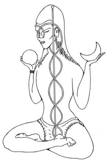 Ida i pingala nie biegną prosto wzdłuż kręgosłupa lecz wiją się wokół niego, jak węże wokół laski Kaduceusza.