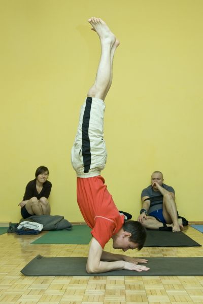 Niektórym osobom trudnej jest utrzymać stabilność w pozycjach. Trzeba to zaakceptować i być zadowolonym z tego, co jest. Gdy będziesz mądrze praktykować - powoli wszystko przyjdzie. Pamiętam pewną panią koło 60-tki, która przyszła do mnie na zajęcia. Miała zawroty głowy, była bardzo słaba i nie mogła ustać stabilnie nawet w takich pozycjach jak tadasana czy trikonasana. Przez pierwsze 2-3 tygodnie wszystkie pozycje stojące robiła stojąc pod ścianą. Pamiętam, jak po 3 miesiącach jej praktyki zaskoczony zauważyłem, że bez żadnej pomocy wykonuje virabhadrasanę III i utrzymuje w niej równowagę na dłuższy czas.