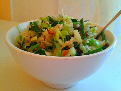 Najwyższa pora na surówkę z pora! Z dodatkiem zielonego ogórka, jesiennego jabłka, słonecznika i prażonego sezamu!
