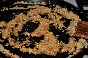 Upraż sezam na niewielkiej ilości rozgrzanego oleju i pozostaw do całkowitego ostygnięcia.