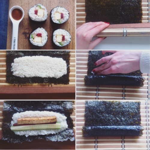 W dodatku postanowił on nauczyć się rolować domowe maki, wysyłając mi przy okazji zdjęcia swoich prób. A ja, jak to ja, musiałam szybko popędzić do sklepu po potrzebne składniki i zabrać się za swoją wersję, zakładając, że moje sushi musi być wyjątkowe, zgrabniejsze i zupełnie wegetariańskie.