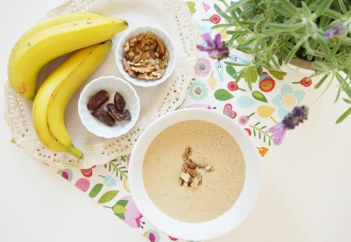 Następnie masędodać do mleka z siemieniem lnianym i wszystko raz jeszcze dokładnie rozdrobnić mikserem do uzyskania gładkiej konsystencji budyniu. Aby dodać budyniowi słodyczy, można dodać do niego 1-2 daktyle. Dzięki temu uzyskamy słodki deser bez dodatku cukru. Do gotowego budyniu można dodać ulubione orzechy np. włoskie. Smacznego!