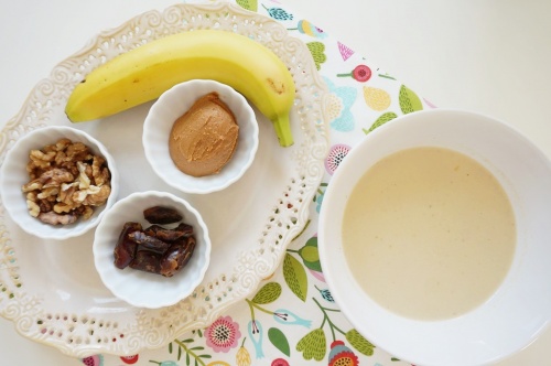 Aby przygotować budyń, należy uprzednio zalać siemię lniane mlekiem roślinnym i pozostawić na kilkanaście godzin (lub na noc) w lodówce. Po namoczeniu siemię lniane nabierze konsystencji kleiku. Masło orzechowe należy zmiksować z bananem.