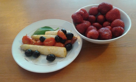 Pieczone szparagi podajemy z dobrym pieczywem. A na deser miseczka pachnących truskawek. I wykwintna kolacja gotowa :-)