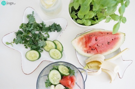 Nasza propozycja to koktajl na bazie jarmużu z odrobiną orzeźwiającego ogórka, soczystego arbuza, słodkiego banana oraz aromatycznej bazylii. To idealny przepis na lato - lekki i zdrowy!
