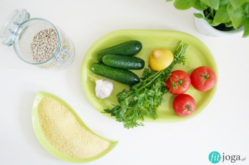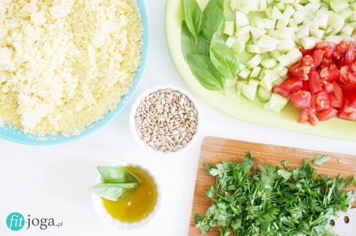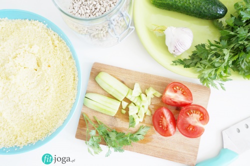 Kuskus należy zalać wrzątkiem lub gorącym bulionem i pozostawić, by napęczniał (maksymalnie 10 minut). W tym w upalny dzień. Smacznego!