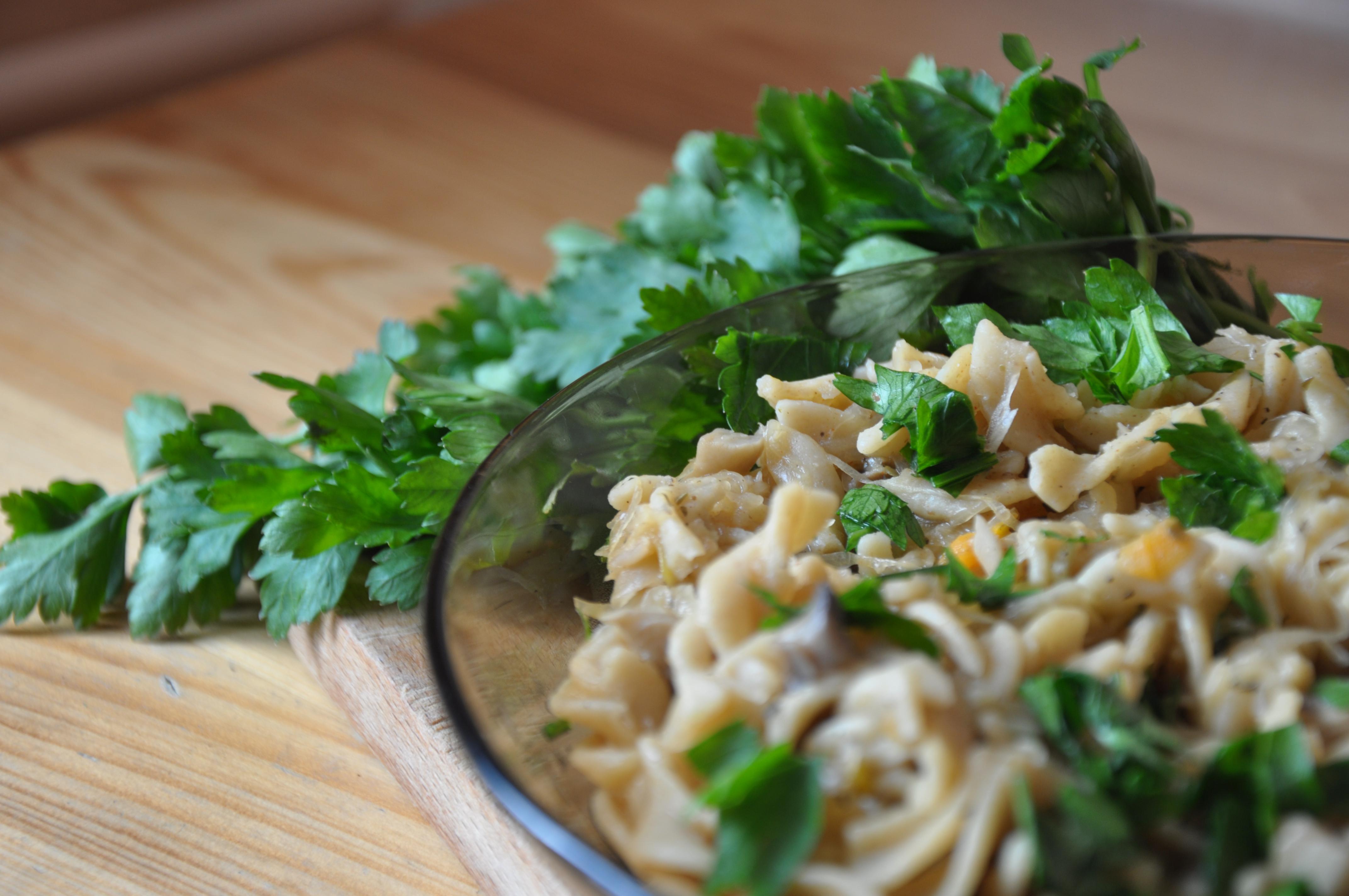 - Świeżą natkę pietruszki poszatkować i dodać do łazanek bezpośrednio przed spożyciem.