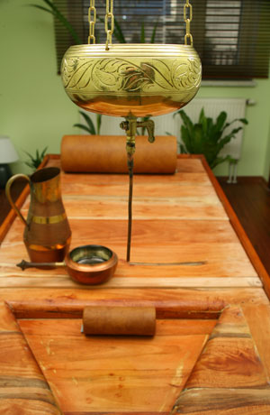 Chaminda Piyanandana: Oprócz ziół istotnym elementem kuracji jest masaż ciepłym olejem. Odpowiednio dobrany olej oraz ucisk punktów specjalnych na ciele pozwala usunąć toksyny z organizmu. Podstawowym masażem jest ABHYANGA. Rozluźnia i przygotowuje ciało do innych zabiegów. SHIRO DHARA jest zabiegiem polegającym na ciągłym polewaniu głowy ciepłym olejem i masowaniu punktów specjalnych. Jest doskonała dla osób cierpiących na bezsenność i bóle głowy. Poprawia pamięć, głęboko relaksuje. Pomaga w leczeniu parkinsonizmu, porażeń. PINDA SWEDA pomaga w leczeniu bólu stawów, reumatyzmu, artretyzmu, paraliżu, opóźnia procesy starzenia. Ciało masowane jest w tym wypadku ciepłym olejem, a następnie uciskane przy pomocy płóciennych stempli. NASYA KARMA pomaga w leczeniu chronicznych stanów zapalnych zatok, bólu głowy, migrenie, porażeniu twarzy, chorób oczu, nosa, uszu. Olej lub wyciąg z ziół wkrapiany jest do nosa i mocno wciągany. Inne zabiegi stosowane są w zależności od stanu zaawansowania choroby.