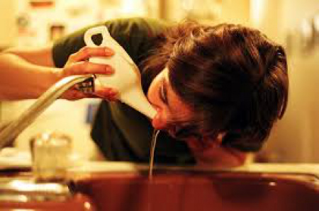 Najłatwiejszy do wykonywania jest Jala neti, czyli oczyszczanie wodą. Do naczynia zawierającego ok. 500ml letniej wody wsyp łyżeczkę soli. Roztworem tym napełnij specjalne naczynie z długim, wąskim dziobkiem. Włóż dziobek naczynia w prawe nozdrze i oddychaj swobodnie przez otwarte usta. Następnie przechyl głowę na lewo, aby woda mogła dostać się do prawego nozdrza i przepłynąć do lewego nozdrza dzięki sile grawitacji.