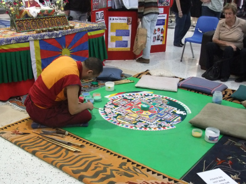Mnisi buddyjscy, którzy tworzą mandale, robią to w odosobnieniu i w medytacyjnym skupieniu. Wytężona praca trwa wiele godzin, czasem kilka dni i wymaga wielkiej cierpliwości. Najpierw powstaje rysunek. Potem starannie wypełnia się go kolorowym piskiem. A potem mandalę się niszczy - ten końcowy akt to symbol nietrwałości i przelotności tego, co ziemskie.