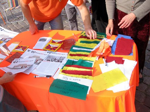 Działacze Programu Tybetańskiego przygotowali 73 pomarańczowe baloniki (ten kolor jest symbolem protestu przeciwko Olimpiadzie w Chinach), do których można było przyczepiać życzenia.