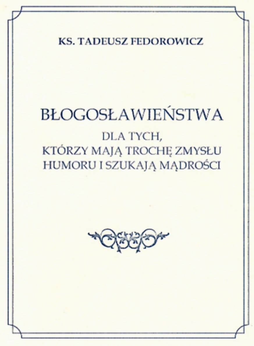 Fragment pochodzi z książki księdza Tadeusza Fedorowicza "Błogosławieństwa dla tych, którzy mają trochę zmysłu humoru i szukają mądrości" wydawnictwo Norbertinum