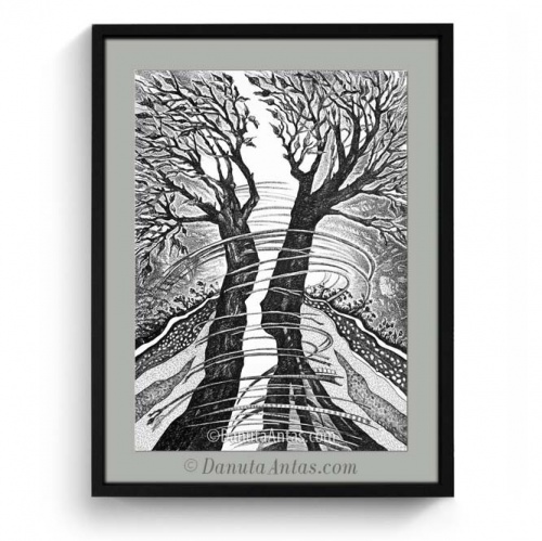 D.A.: Rzeczywiście od czasu, gdy zetknęłam się z medytacją, znacznie wzbogaciła ona moją twórczość, ujawniła nowe sposoby obrazowania. No i myślę, że również wydobyła inny wymiar mnie samej i tego, co chcę przekazać odbiorcy. Wpływ ten przejawia w różny sposób. Nie mam stałej metody postępowania podczas tworzenia prac. Czasami jest to tak, że podczas spacerów w lesie z moimi psami, mam okazję obcować z ciszą i wtedy staję się bardziej wrażliwa na otoczenie, na detale, ulotne chwile, rozbłyski światła, na szczególną energię. One zapadają we mnie i po jakimś czasie, gdy czuję potrzebę, przelewam te zapisane wrażenia na papier. Innymi razy mam ze sobą aparat fotograficzny i na gorąco notuję miejsca, które swoją energią przykuły moją uwagę.