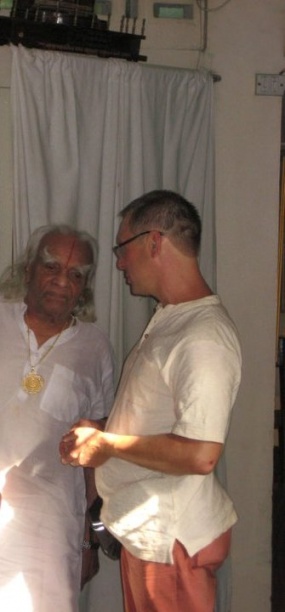Pierwszy raz spotkałem Gurudżiego jesienią 1988 roku, podczas mojego pobytu w Instytucie. Przebywałem tam już od paru miesięcy uczęszczając na zajęcia z Gitą i Praszantem. Widywałem Go codziennie podczas zajęć i praktyki, ale poza wymianą kilku zdań nie miałem z nim bliższego kontaktu. Zresztą Gurudżi był srogi i niedostępny- tak przynajmniej wtedy mi się wydawało. Aż pewnego dnia (było to po wypadku Praszanta) Gurudżi przejął jego klasy.