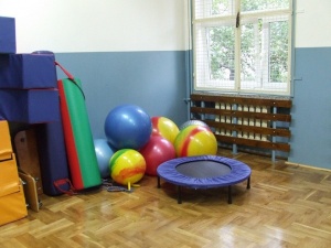10. Jakimi pomocami dysponuje szkoła: drabinki, koce, klocki, paski, liny, krzesła, piłki rehabilitacyjne, pianki, "wieloryb",