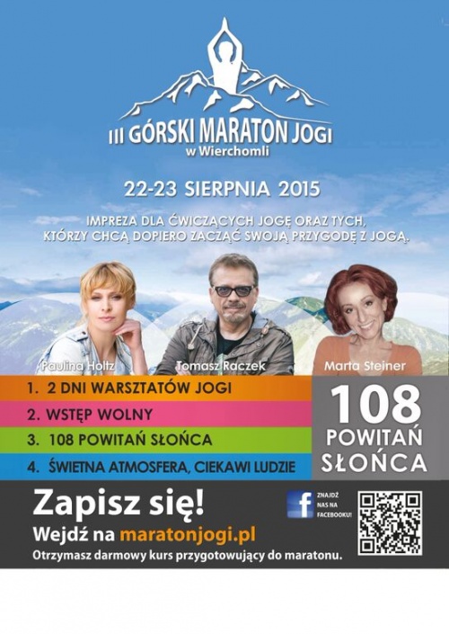 O swojej przygodzie z jogą i 108 Powitaniach Słońca opowiada Paulina Holtz - znana aktorka teatralna i filmowa, patronująca Górskiemu Maratonowi Jogi. :-)