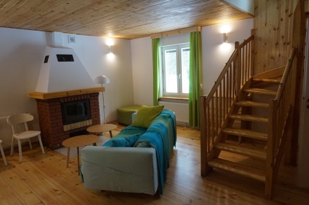 W każdym z nich na parterze znajdziesz w pełni wyposażony aneks kuchenny, obszerny salon z przytulnym kominkiem i wygodną łazienkę. Nasze domki są ocieplane, i ogrzewane więc niezależnie od pory roku zadomowisz się w ciepłym i przytulnym domku!