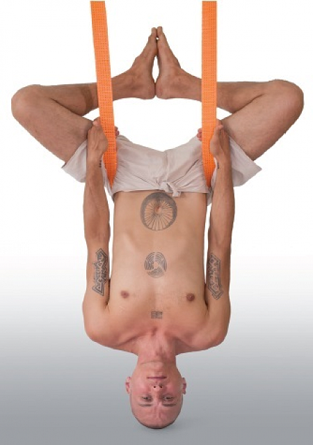 Potrzebny jest drążek do podciągania się montowany we framudze drzwi ( koszt na allegro 20-40 zł) lub drabinka. Przyczepiasz pas bezpośrednio do drążka, lub szczebelka drabinki przy pomocy karabińczyków. Możesz dowolnie regulować długość pasa - dostosowując do swojego wzrostu i wykonywanych pozycji. Drabinka daje znacznie więcej możliwości, ale podstawowe pozycje: sirsasanę, pasa z głową w dół, uttanasanę można wykonywać na drążku w drzwiach.