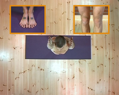 - Stopy dociśnięte do podłogi, rzepki kolan w górze