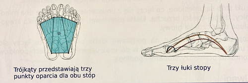 Podstawową strukturę stóp można przedstawić za pomocą trójkąta. (Zdj. 1) Trzy punkty trójkąta są trzema miejscami, na których opierają się stopy na powierzchni: guz piętowy oraz podstawa pierwszej i piątej kości śródstopia. Linie łączące te punkty tworzą łuki - trzy linie wzniesienia, które zapewniają oparcie dla postawy ciała: łuk podłużny przyśrodkowy, łuk podłużny boczny i poprzeczny przedni.