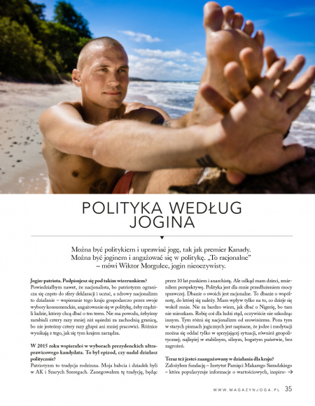 Czy osoby, które praktykują jogę,powinny mieć dystans do świata? Także do tego, co dzieje się w polityce? Czy wolno im mieć poglądy. A jeśli tak, to jakie? I dlaczego? Poniżej zamieszczamy wywiad z Wiktorem Morgulcem zaczerpnięty z magazynu Joga.