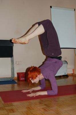13 grudnia 2009 roku w Pracowni Jogi Macieja Wieloboba w Krakowie odbył się warsztat : "Radość jest energią: joga jako pierwotna zabawa". U progu zimy Maciek postanowił pokazać swoim uczniom, że praktyka asan nie jest sztywnym systemem, ale można ją potraktować jako radosny eksperyment. Oczywiście stałym elementem doświadczeń w jodze pozostaje uważność.Gotowi podjąć wyzwanie stawiliśmy się przed 10.00 w pracowni Maćka w Krakowie. Dojechaliśmy z różnych stron Polski (Przemyśl, Jelenia Góra, Zabrze, Kraków, Opole), aby wziąć udział w tych warsztatach i wgłębić się w świadomość ciała, oddechu, zachowując przy tym pełne świeżości podejście. Jako stała uczestniczka warsztatów z Maćkiem wiem, że zawsze spotka mnie jakieś nowe doświadczenie, odkryję na nowo swoje możliwości, pokonam trud, ale odczuję też radość z wewnętrznego postępu. Tak było i tym razem. Po skłonach i skrętach wykonywanych zarówno dynamicznie, jak i statycznie, robiliśmy malasanę. Wykonane następnie powitania słońca mocno nas zaaktywizowały (szczególnie wariant II). Sekwencja "latającego ptaka" (khagasana viśesza vinyasa) ukazała nam, że jogę można rzeczywiście potraktować jako pierwotna zabawę. Następnie przeszliśmy do mostków i różnych ich wariantów. Zaraz po nich "bonus": przejście z psa z głową w dół do mostka i z powrotem. W wykonaniu Maćka ćwiczenie wyglądało na nietrudne, aczkolwiek sprawiło sporo zamieszania, ale i zabawy. Niektórym uczestnikom warsztatu się udało. Następnie wykonywaliśmy vasisthasanę, viśvamitrasanę oraz balanse na rękach (m.in. bakasanę z wariantami - w tym ze stania na głowie i z psa z głową z dół, parsvabakasanę, ekapadabakasany, ekopadakaundinyasanę I i II). Tym razem Maciek postawił na asany i warianty rzadziej wykonywane, a zatem rzadko wykonywane warianty stania na głowie (np. mukta hasta sirsasana, baddha hasta sirsasana i inne) i świecy (m.in. niralamba sarvangasany, parśvasarvangasana, mandalasana w świecy), jak również niektóre warianty pozycji stojących nauczane przez Śrivatsę Ramaswamiego. Mnie szczególnie podobały się kolejne asany: ekapadaustrasana (czy jak ją nazywa Ramaswami "camel walk") i langhu vajrasana. Dołączę je do codziennej praktyki.