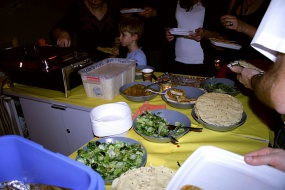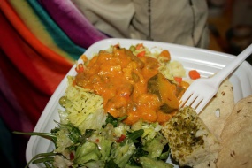 Po uczcie wzrokowej nadszedł czas na ucztę dla podniebienia. Poczęstunek przygotowany przez niezawodnego Piotrka Henschke był różnorodny i przepyszny. Słodko-pikantny chutney, świetnie przygotowany ryż, warzywa doprawione kurkumą, asofetidą, słodkie desery, kawa z kardamonem, czai - smaki Indii w pełnej krasie.