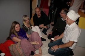 Zabawa przy rytmach hinduskich rozkręcała się w jednej sali, w drugiej toczyły się rozmowy - również o Indiach. Okazało się, ze kilka osób zgromadzonych jedzie w ciągu tygodnia do Indii. Wymiana informacji, porównywanie cen biletów ;-) dzielenie się planami, a może się spotkamy tam, na miejscu? Kto wie?